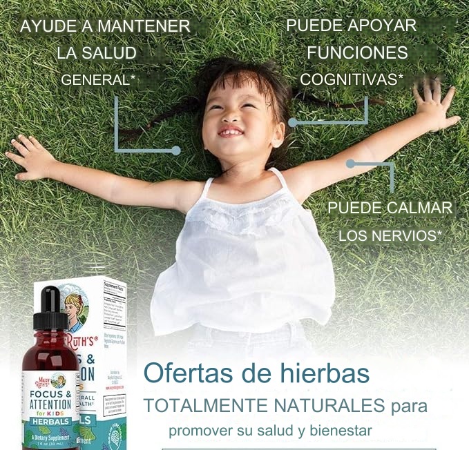- Mezcla de hierbas de enfoque y atención para niños: apoya el bienestar general de tu hijo con esta mezcla de hierbas Las hierbas adaptogénicas y nerviinas apoyan la capacidad del cuerpo para recuperarse y resistir los estresantes, calmar el sistema nervioso y apoyar la capacidad de concentrarse de tu hijo, mientras que los nootrópicos ayudan a mejorar y mejorar la concentración.