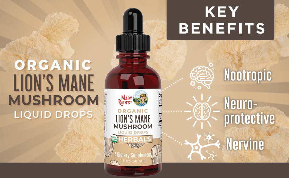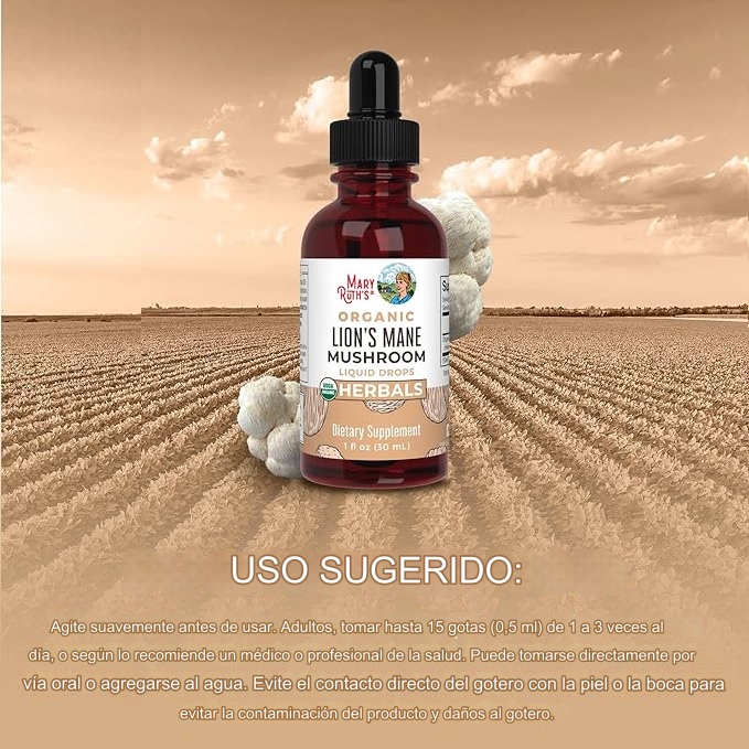 El suplemento en gotas de melena de león de la marca Mary Ruth’s es un producto diseñado para apoyar la salud cognitiva y nerviosa.