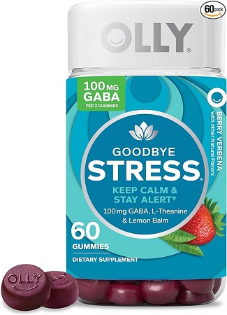 OLLY Goodbye Stress 60 unidades, Alivia el Estrés, incluye GABA, L-teanina, bálsamo de limón, Suplemento para aliviar el estrés y calmar